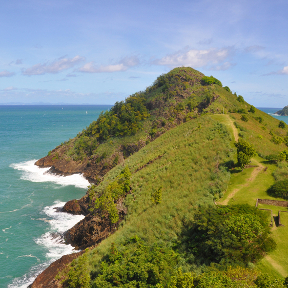 Pigeon Island National Landmark (don't let the name lead you astray) is a 44-acre island reserve just off the north coast of St. Lucia. Connected to the mainland by the construction of a man-made causeway in 1972, the island park is hailed as a monument to St. Lucia's history and its role in 18th-century maritime trade. An interpretation center located within the confines of the park traces the history of long ago battles between English and French troops struggling to control the strategically important outpost.